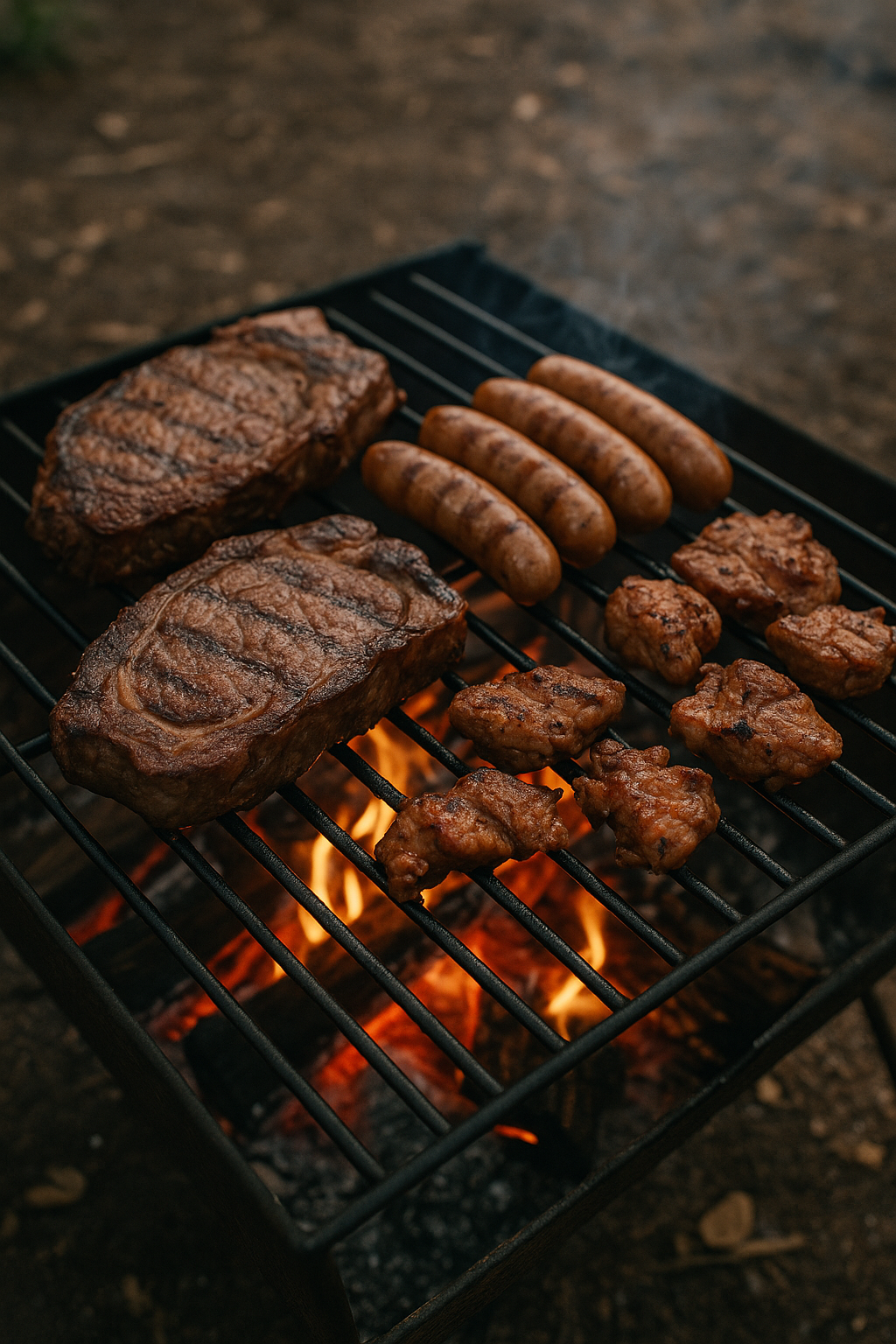 🔥 캠핑장에서 고기 맛있게 굽는 비법 총정리!캠핑의 꽃은 단연 고기죠! 하지만 집이 아닌 야외에서 고기를 굽다 보면 제대로 맛을 살리기 어렵다는 분들도 많습니다. 오늘은 캠핑장에서 고기를 맛있게 굽는 핵심 노하우를 불판, 불조절, 밑간, 구이 순서까지 체계적으로 정리해드립니다.1. 🪵 불판과 불 조절이 핵심캠핑장에서 고기의 맛을 좌우하는 건 바로 불판과 화력입니다.숯불이 최고: 참숯이나 백탄을 사용하면 고기 특유의 풍미가 살아납니다.직화 vs 간접: 직화는 불맛을 살리지만 탈 위험도 커요. 간접 구이(숯 주변에 고기 배치)를 추천합니다.불판 예열: 적어도 10분 이상 예열해 고기를 올리는 순간 '지이익~' 소리가 나게 해야 맛있는 겉바속촉이 가능합니다.2. 🧂 밑간과 마리네이드의 과학고기를 그냥 구..