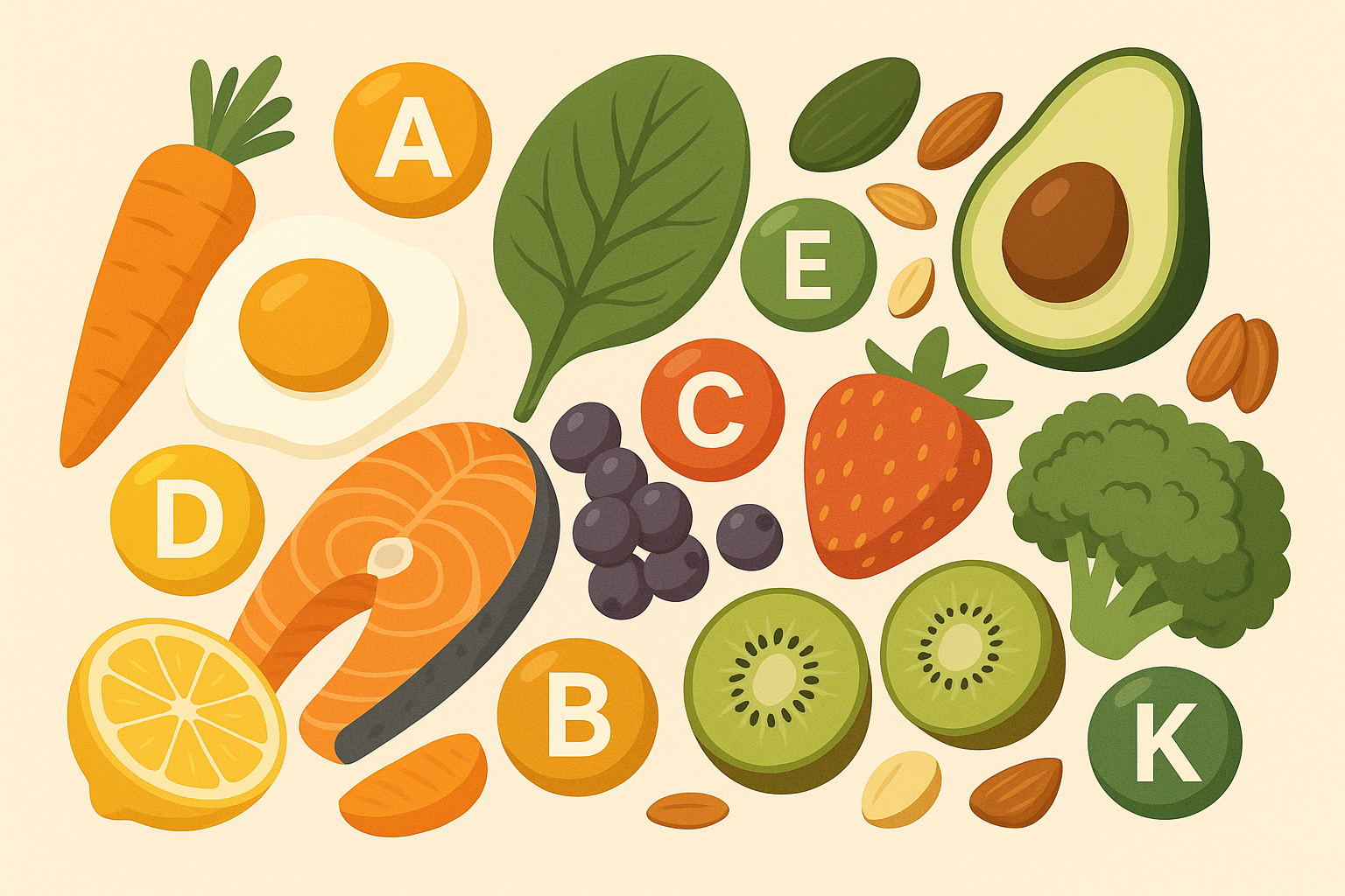 - 수용성 비타민: 비타민 C, B군 (체내에 저장되지 않아 매일 섭취 필요)