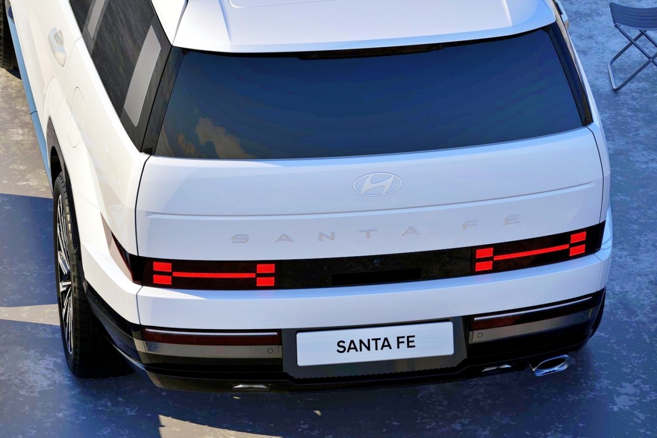 예상도에서 가장 두드러지는 특징은 세로형 테일램프와 이를 가로로 연결하는 제동등입니다. 현행 싼타페는 ‘H’ 내부 그래픽이 적용된 테일램프가 범퍼 위에 장착된 구조였지만, 신형은 이를 완전히 탈피했습니다. 새로운 디자인은 직선이 교차하며 만들어낸 ‘H’ 모양을 전면부와 자연스럽게 이어주고, 현대차의 신규 디자인 언어 ‘아트 오브 스틸(Art of Steel)’이 반영되어 통일감과 고급스러움을 동시에 확보했습니다.